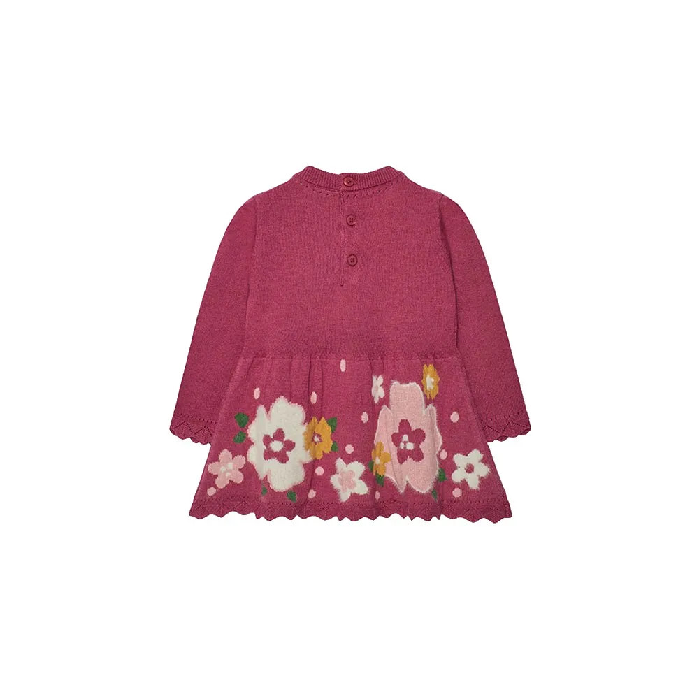 Abito color fragola, perfetto per la stagione autunnale e invernale, offre comfort e calore grazie al suo tessuto morbido. Presenta un design floreale in tonalità rosa, giallo e bianco su uno sfondo fragola, che dona un tocco allegro di colore al guardaroba. Con scollo rotondo e maniche lunghe, è ideale per i giorni più freschi. Disponibile in taglie da 12 mesi a 10 anni, si abbina perfettamente con collant e giacche, creando un look elegante e confortevole per le piccole.