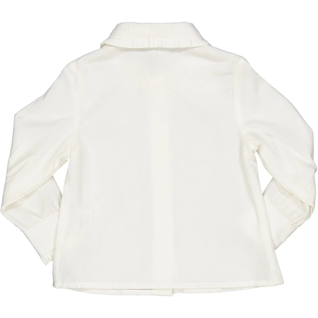CAMICIA IN CALDA E MORBIDA FLANELLA, MODELLO CON COLLETTO E FONDO MANICHE CON ROUCHES. BOTTONI EFFETTO MADREPERLA SUL DAVANTI.