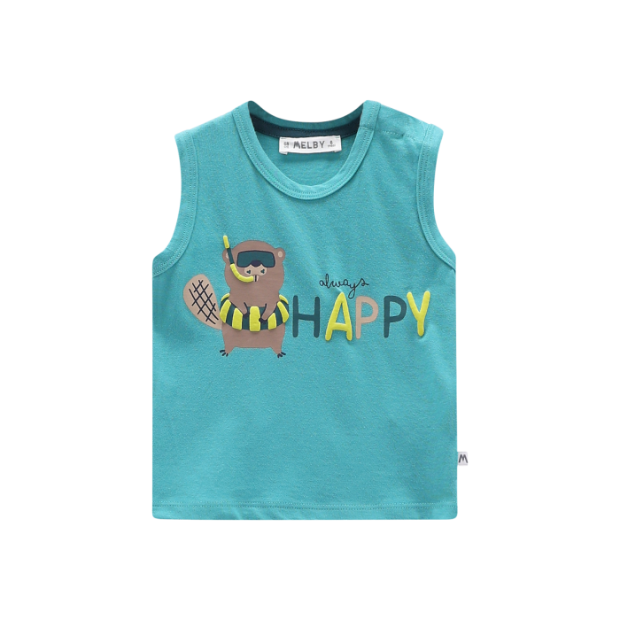 Canotta girocollo per neonato, realizzata in jersey 100% cotone con dolce stampa frontale. Un capo basico e versatile!