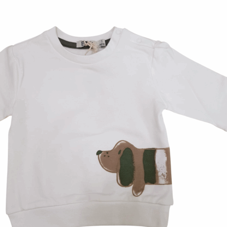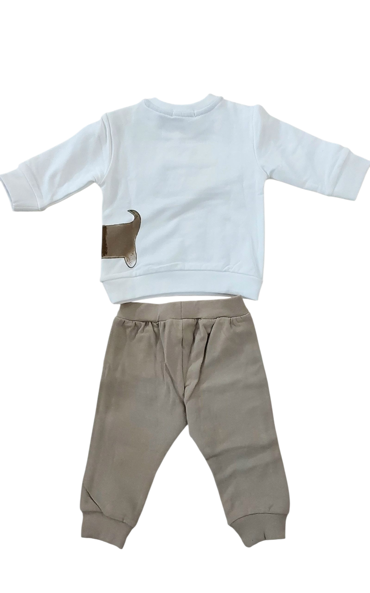 Completo in morbida felpa con bottoncini sulla spalla della maglia che ne permettono un comodo inserimento.