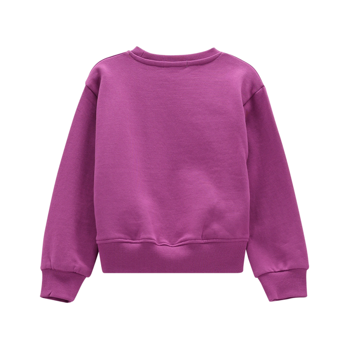 Felpa girocollo per ragazza, dal taglio boxy in felpa invernale tinta unita con decorazione frontale effetto 3D. Lavorazione in costina su collo, polsi e fondo maglia. Perfetta per la scuola e il tempo libero!