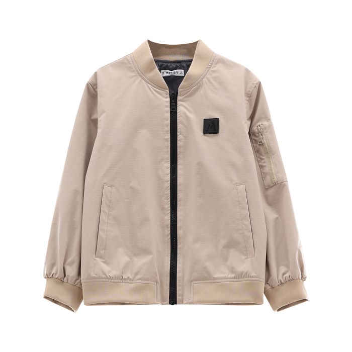 Giubbotto taglio bomber per ragazzo, realizzato in nylon rip stop tinta unita. Taschino con zip su manica.