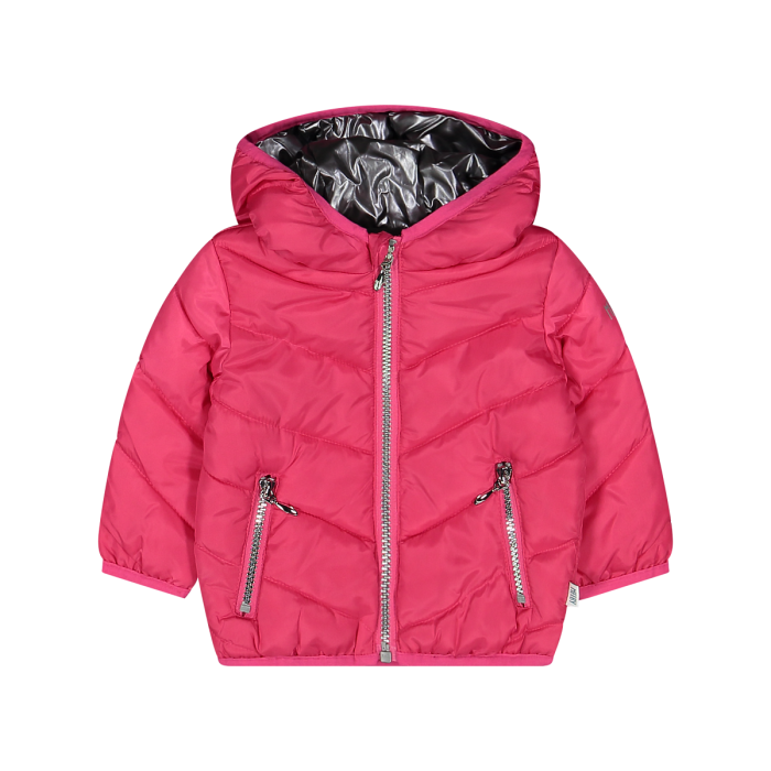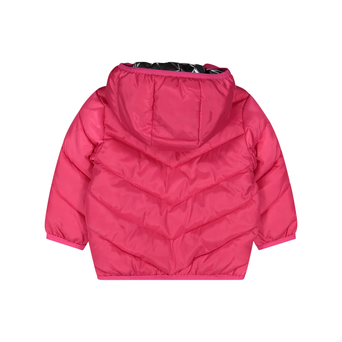 Giubbotto per neonata, realizzato in nylon imbottito e foderato in pile con interno in contrasto di colore. Chiusura frontale full-zip, comodo cappuccio, tasche laterali con zip. Ideale per i mesi più freddi.