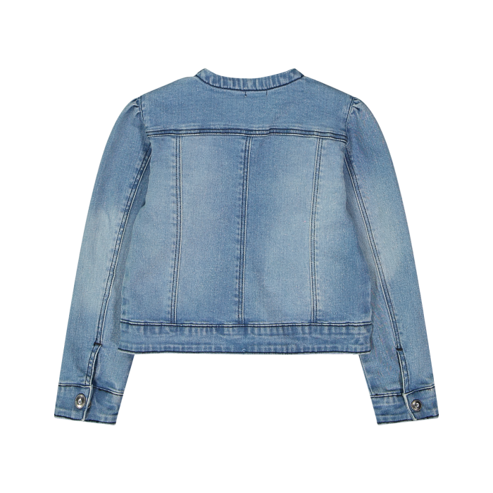Giubbino in tessuto stretch. Maniche lunghe con sbuffo, girocollo, apertura con zip sul davanti, tasche applicate sul petto con patta e bottoni automatici. Capo versatile adatto per ogni occasione.