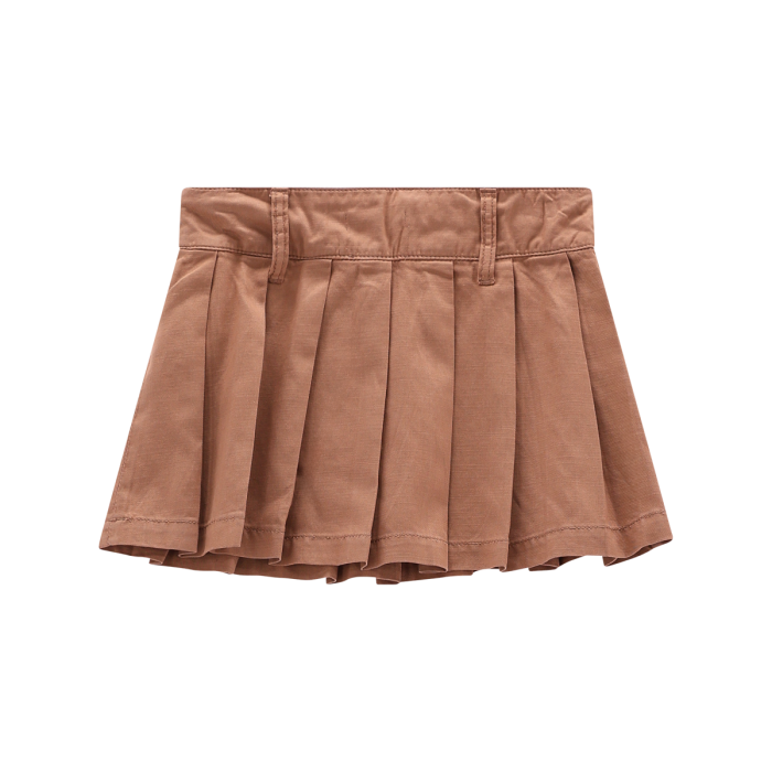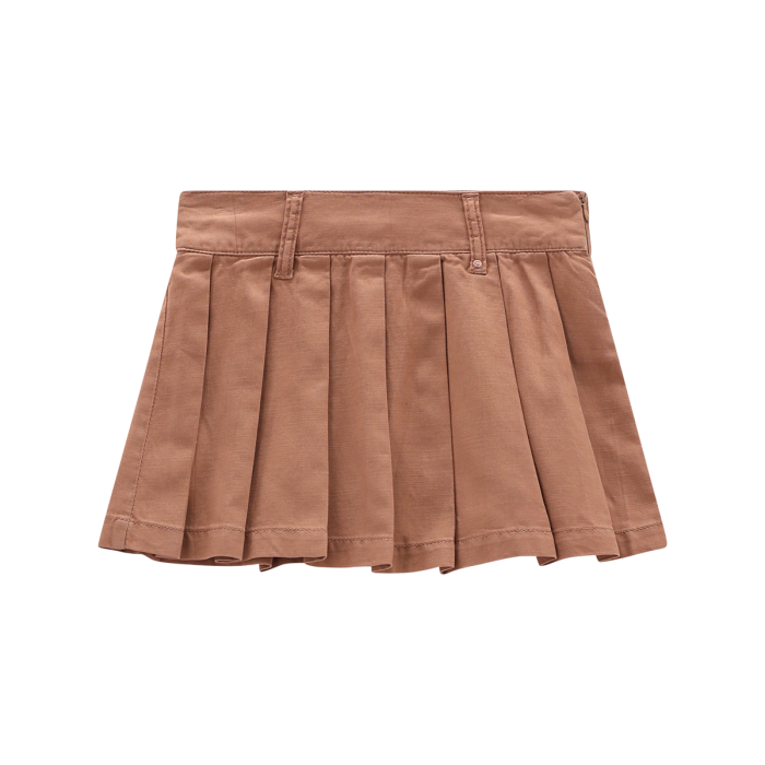 Mini gonna per ragazza, realizzata in gabardina malfilé tinta unita. La plissettatura a tutto capo e i passanti per la cintura rendono il capo perfetto per le occasioni speciali, da abbinare alle camicie in collezione!