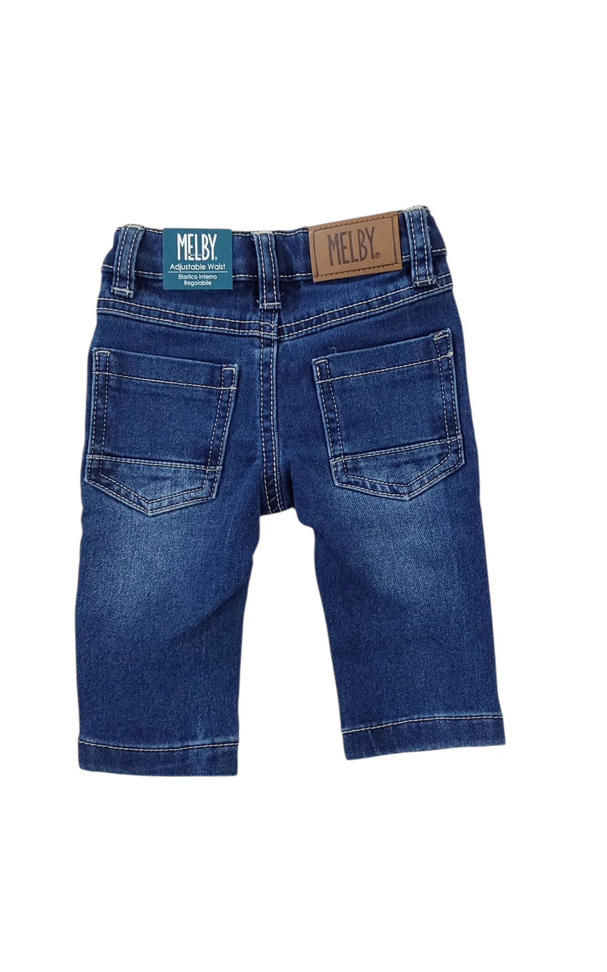 Jeans morbido e confortevole per neonato, con bottone a clip ed elastico interno regolabile.