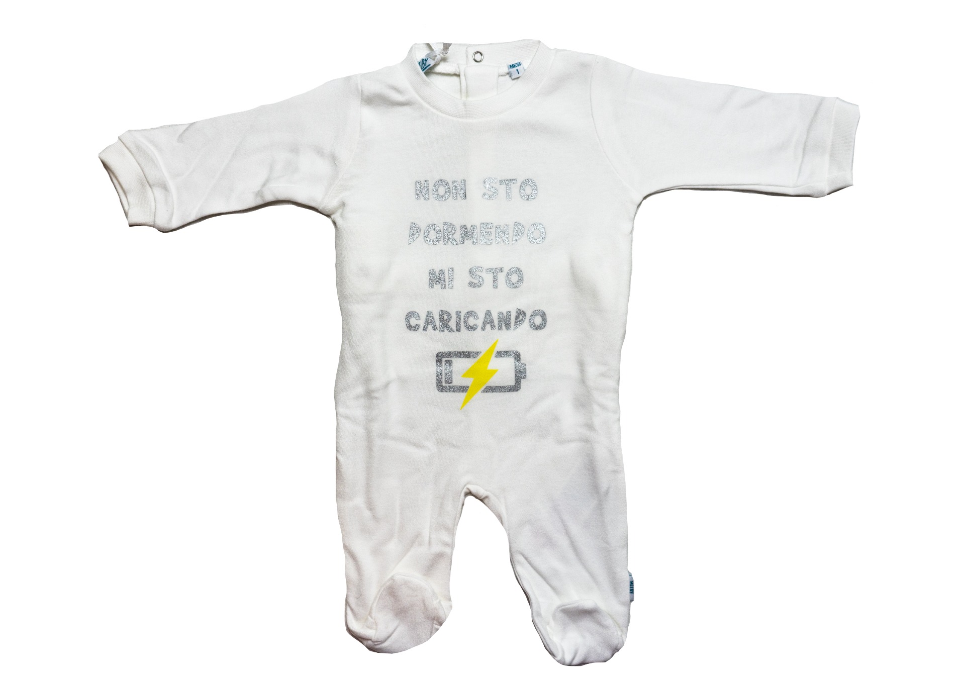 Tutina in caldo cotone bianca con scritta "Non sto dormendo, mi sto ricaricando"