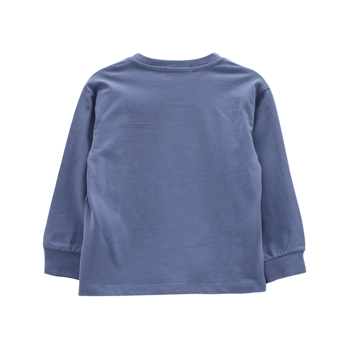 T-shirt girocollo a maniche lunghe per bambino, realizzata in jersey invernale con simpatica stampa frontale a tema dinosauri.