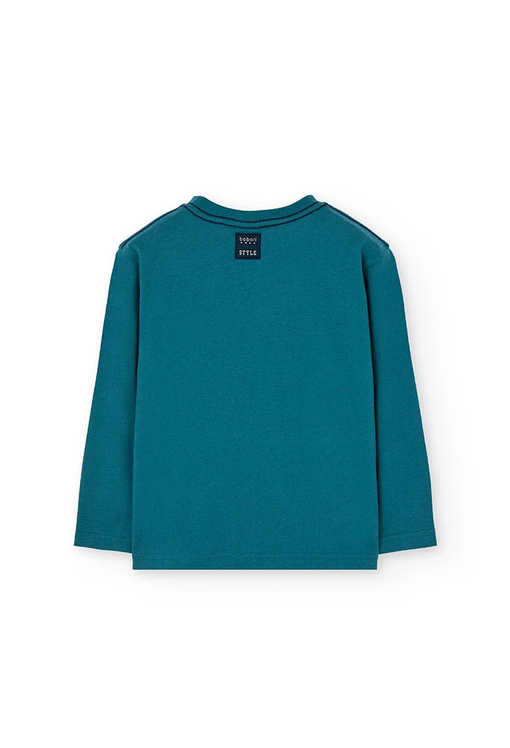 Maglietta di cotone per bambino di colore verde con motivi di animali marini, perfetta per i giorni più freschi. Realizzata in cotone morbido, assicura comodità per tutto il giorno. Il design educativo e divertente sul davanti cattura l'immaginazione dei piccoli amanti dell'oceano. Ideale da abbinare con jeans o pantaloni casual, offre un'opzione versatile e stilizzata per qualsiasi guardaroba infantile.