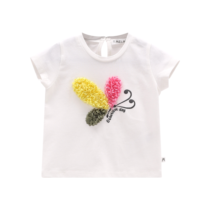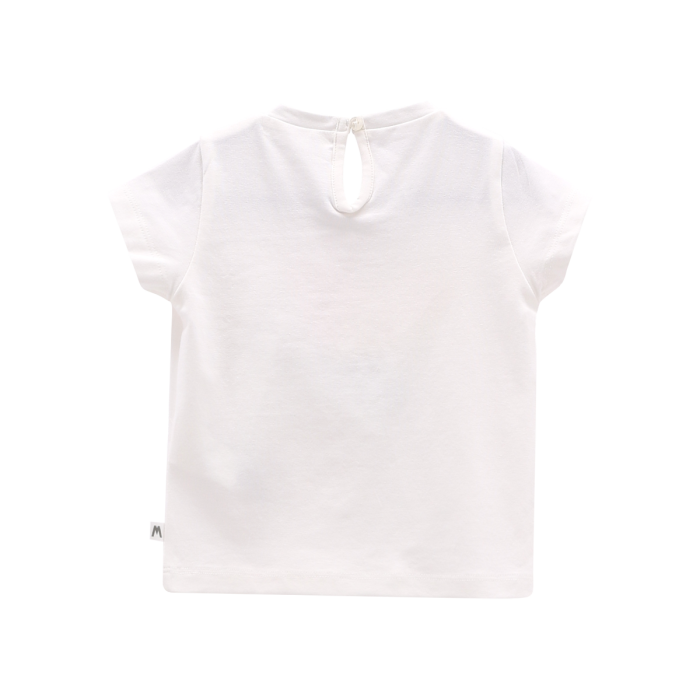 T-shirt girocollo a maniche corte per bambina, realizzata in jersey stretch tinta unita con colorata stampa floreale. Pratica apertura sul retro. Perfetta per il tempo libero!