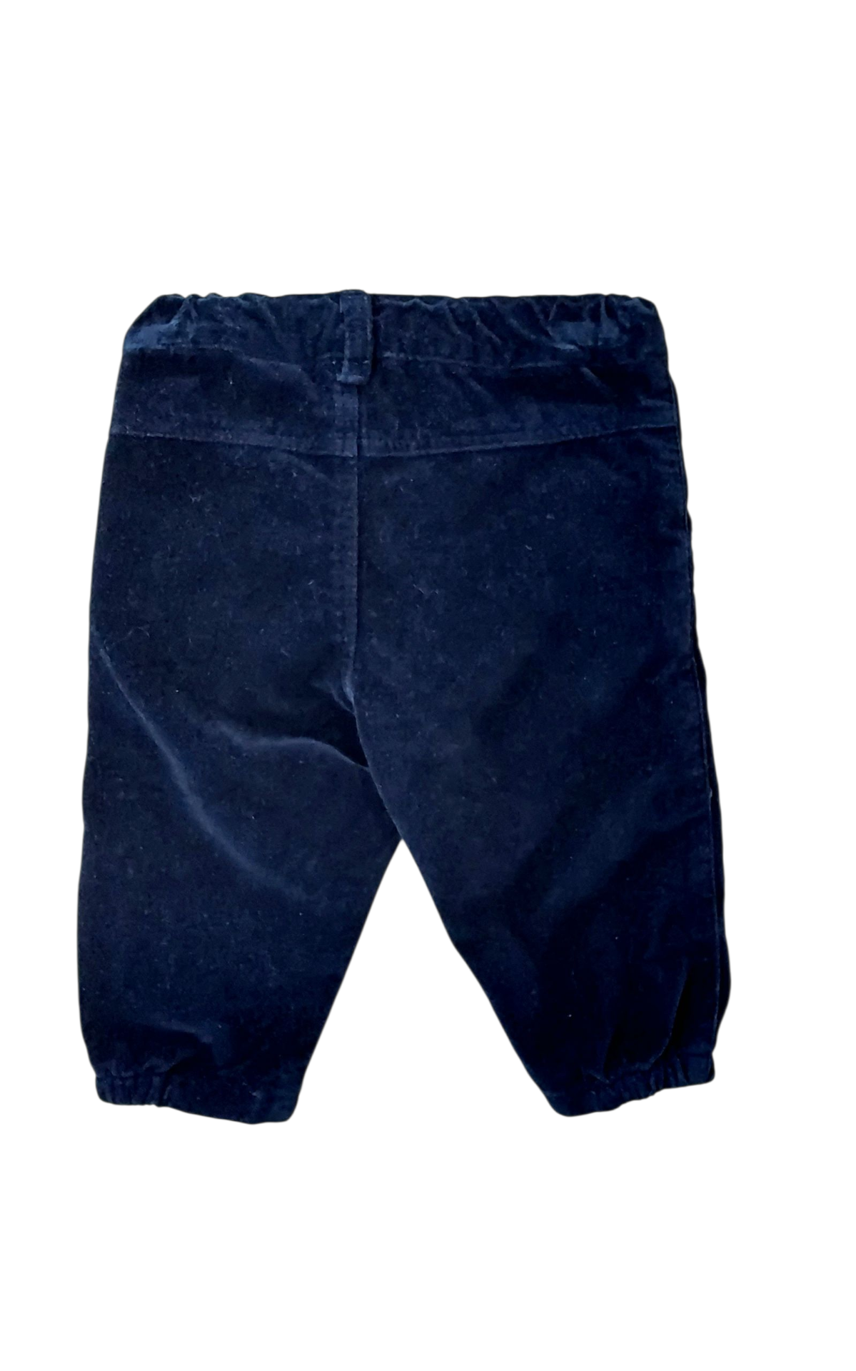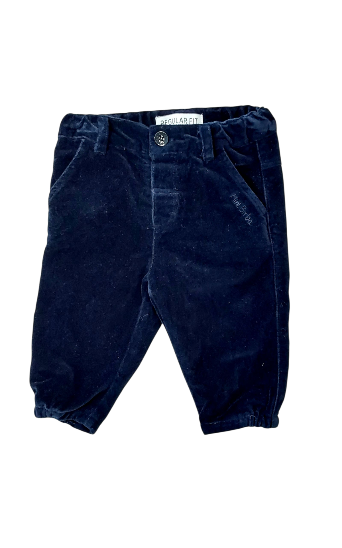 PANTALONE IN TESSUTO VELLUTO LISCIO MODELLO REGULAR FIT CON VITA E FONDO GAMBA ELASTICATO. BOTTONE PERSONALIZZATO IN VITA. RICAMO MINI BIRBA SUL BORDO DELLA TASCA DAVANTI.