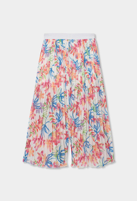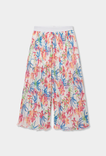 Pantaloni di chiffon plissettato stampato per bambina, ideali per la stagione primavera-estate. Il suo materiale in chiffon plissettato lo rende leggero e fresco, perfetto per i giorni caldi. Presenta una stampa floreale colorata in toni vivaci che aggiunge un tocco allegro all'insieme. Il suo design fluido e rilassato offre comfort e stile, rendendo questi pantaloni un pezzo versatile da abbinare con t-shirt basic o bluse per un look casual e chic.