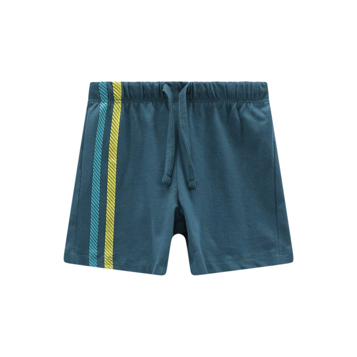 Bermuda per neonato realizzato in jersey 100% cotone. Vita elasticizzata con coulisse interna in tono colore. Stampe laterali.